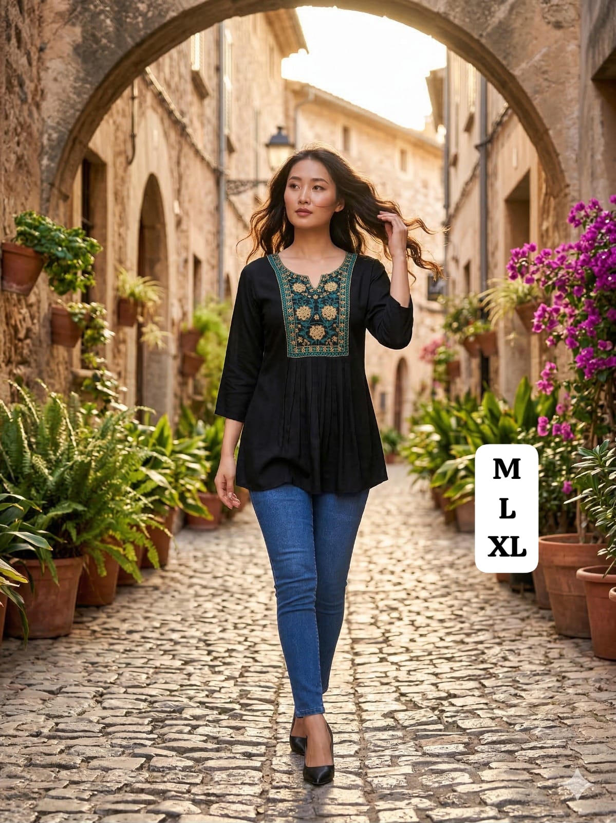 Embroidery Work Short Tops for Office and Regular Wear