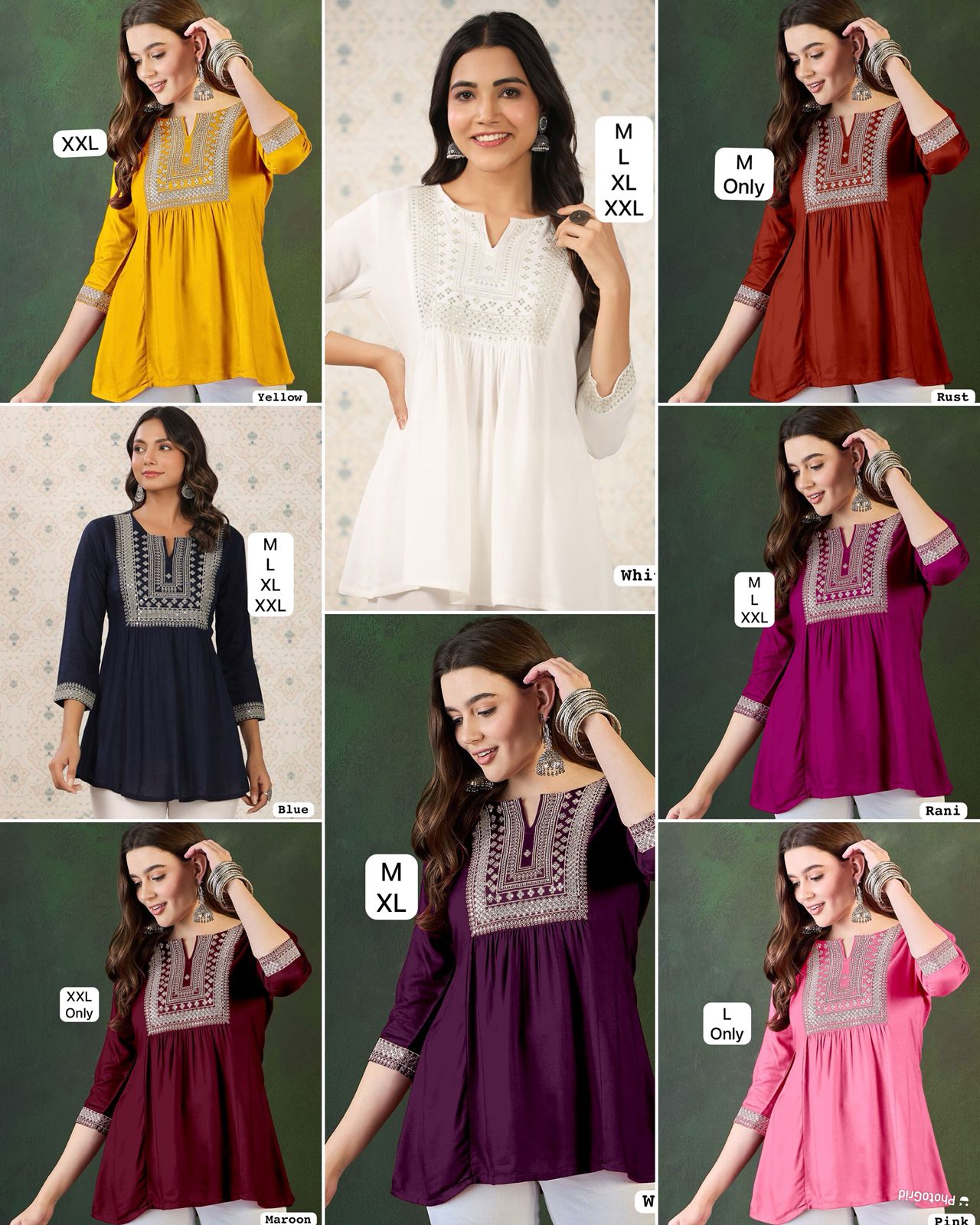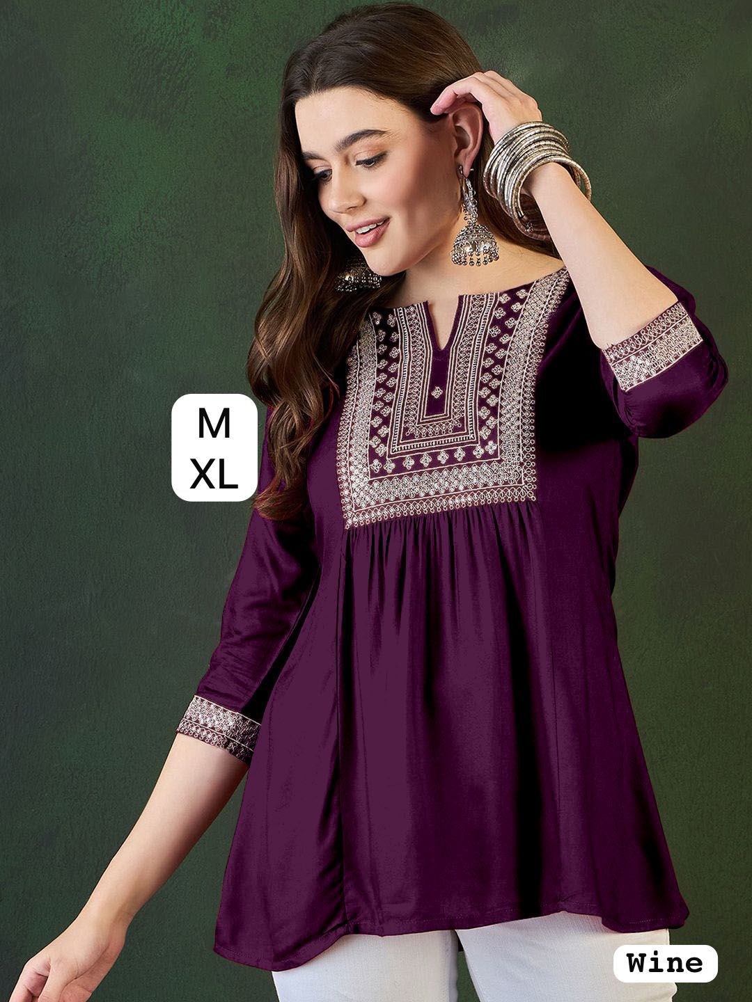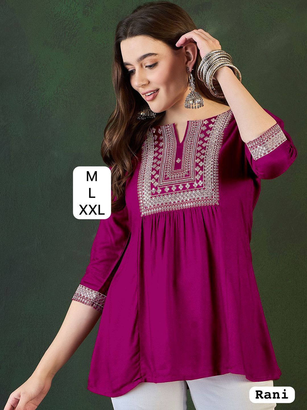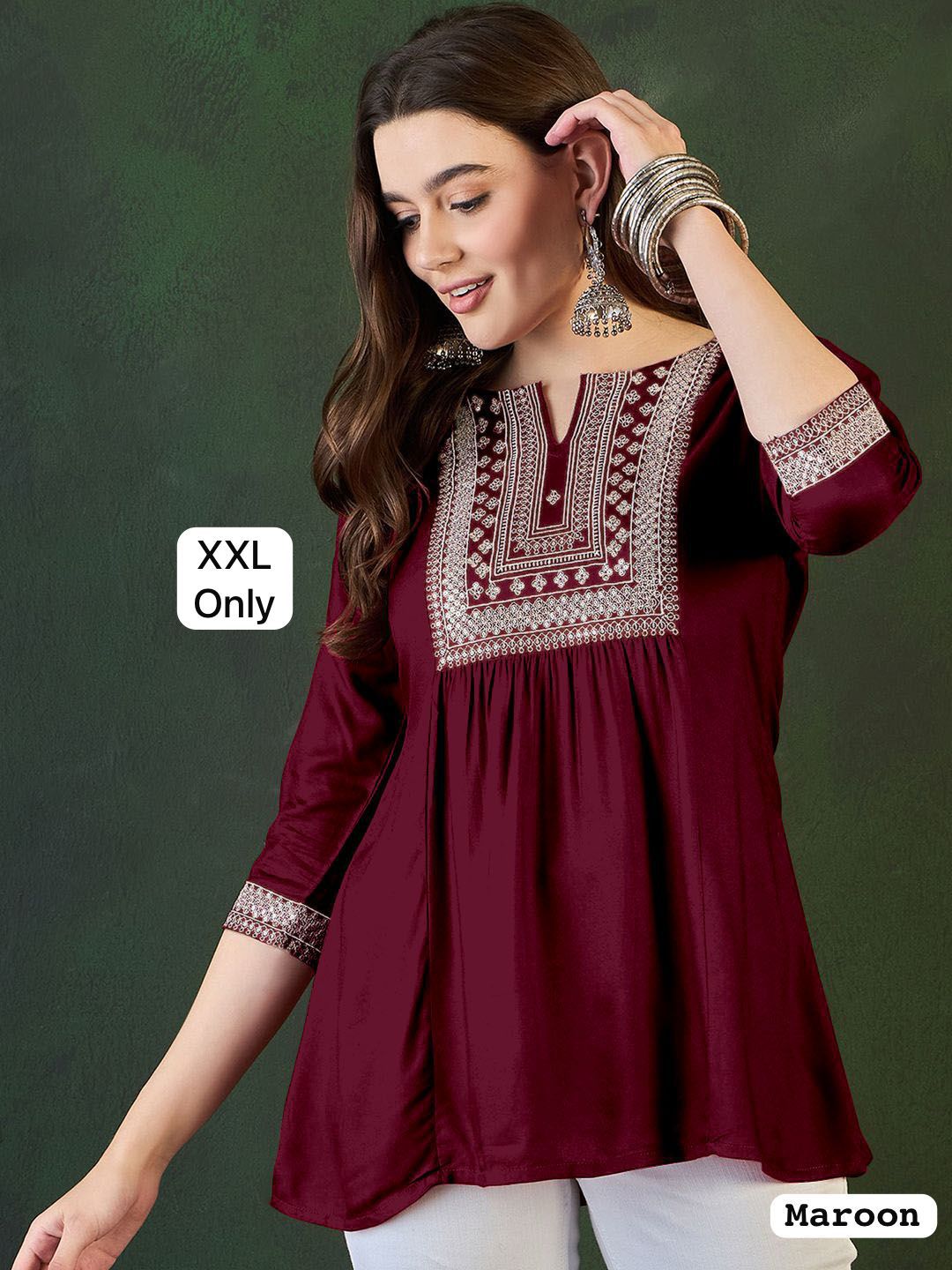 Trending Short length Kurti with Embroidery Work