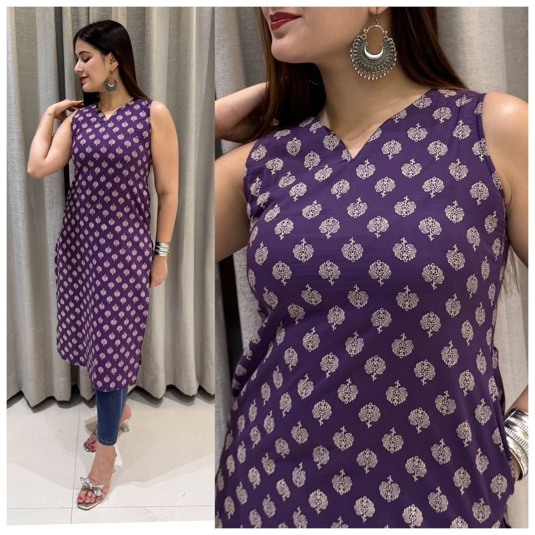 Sleeveless Cotton Printed Kurti For Regular and Office wear