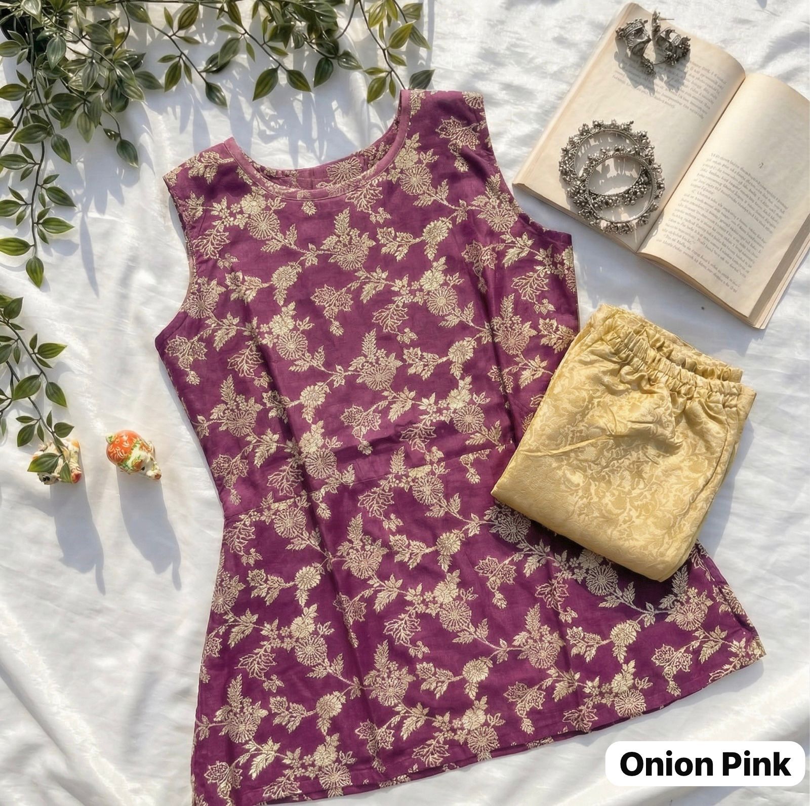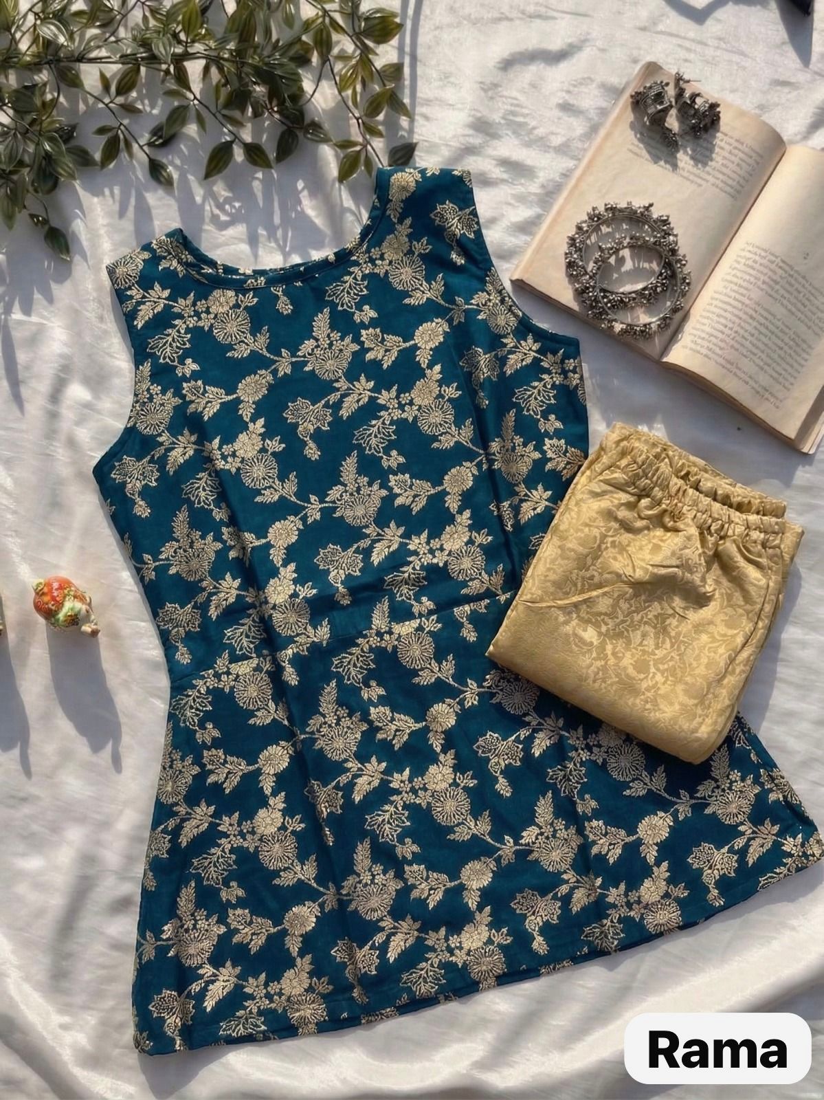 Top + Bottom : Banarasi brocade with full inner in top and pant both