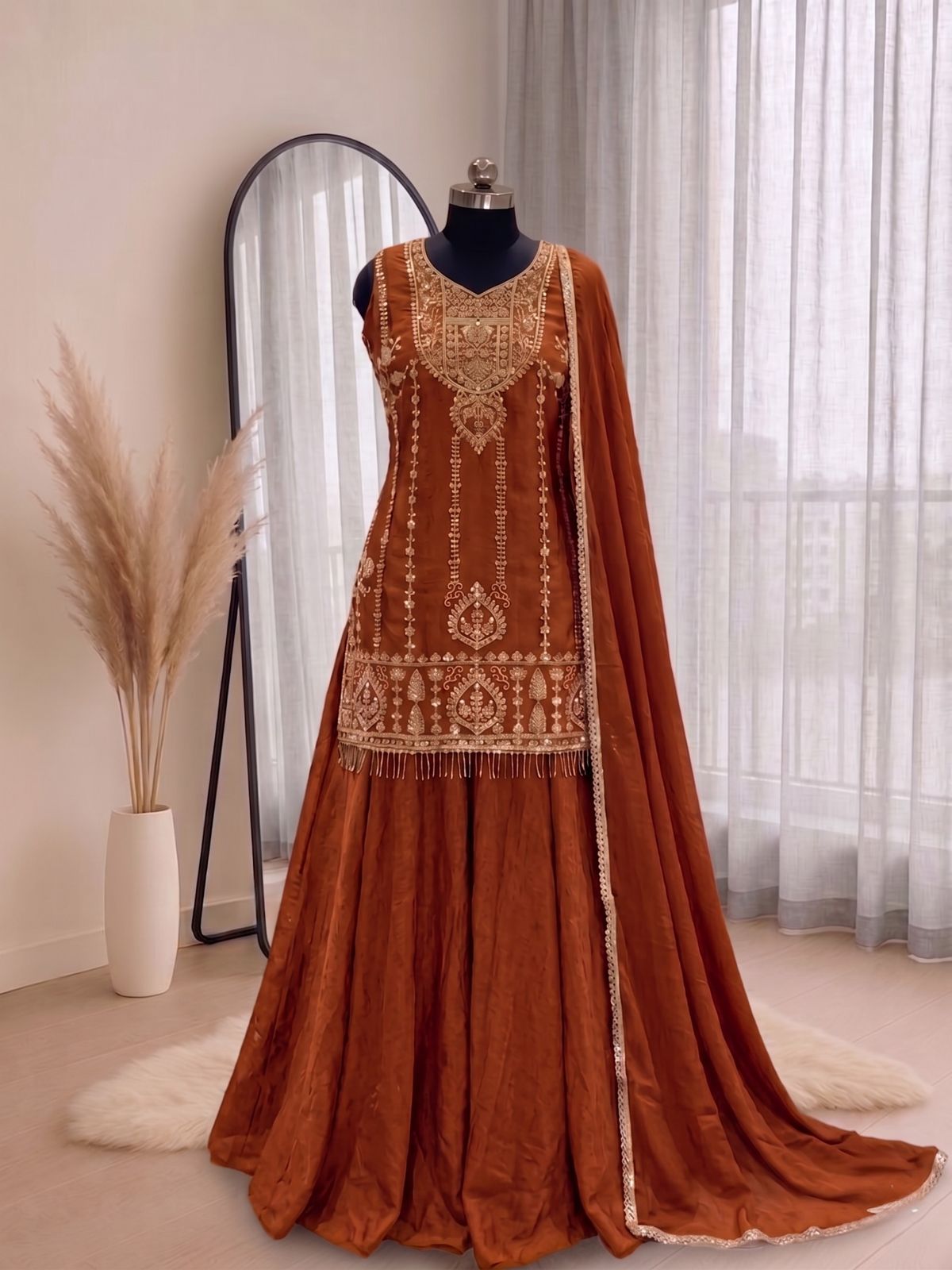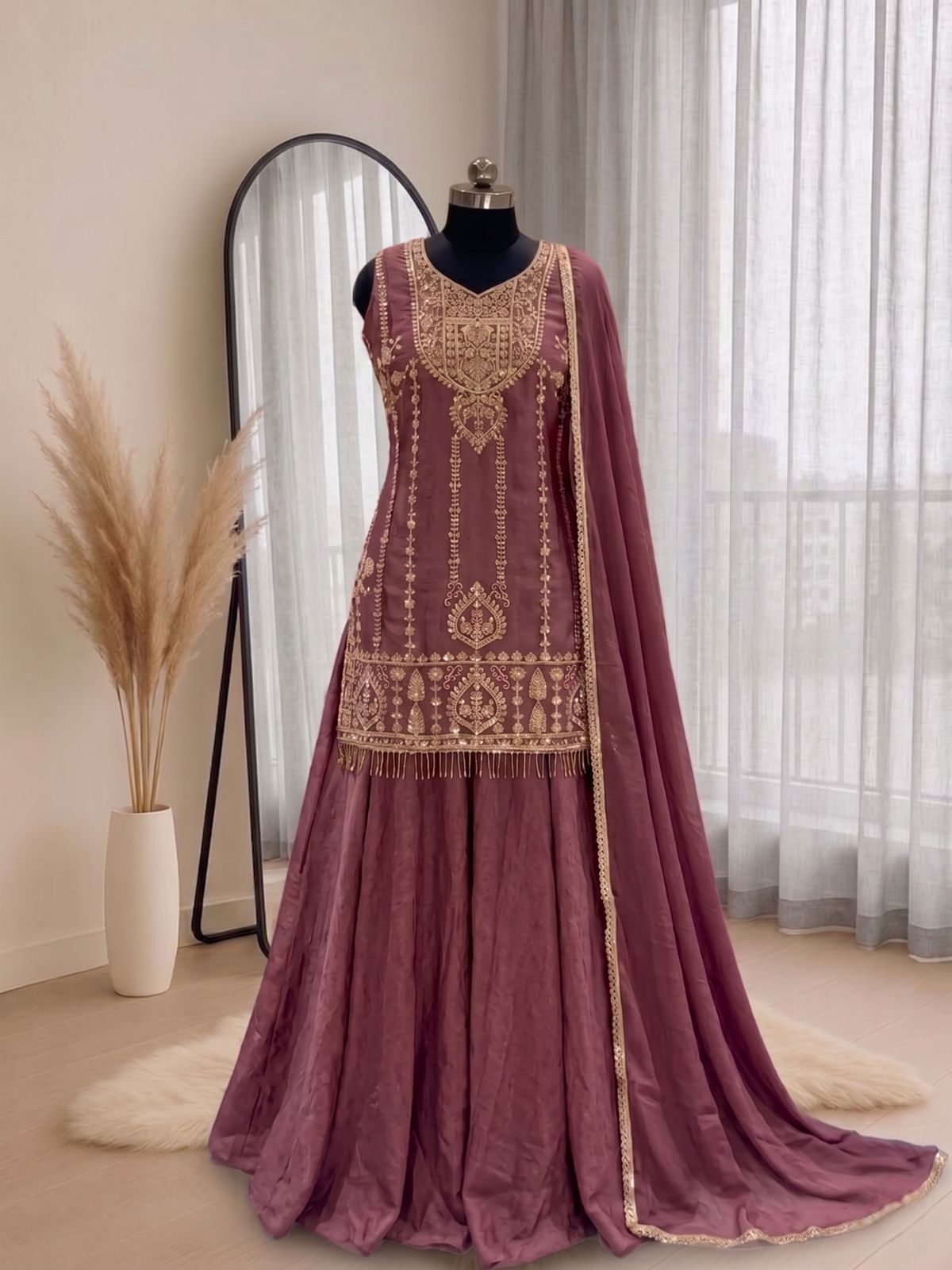 👗 Top : Rangoli crush with heavy Embroidery work + Beads work