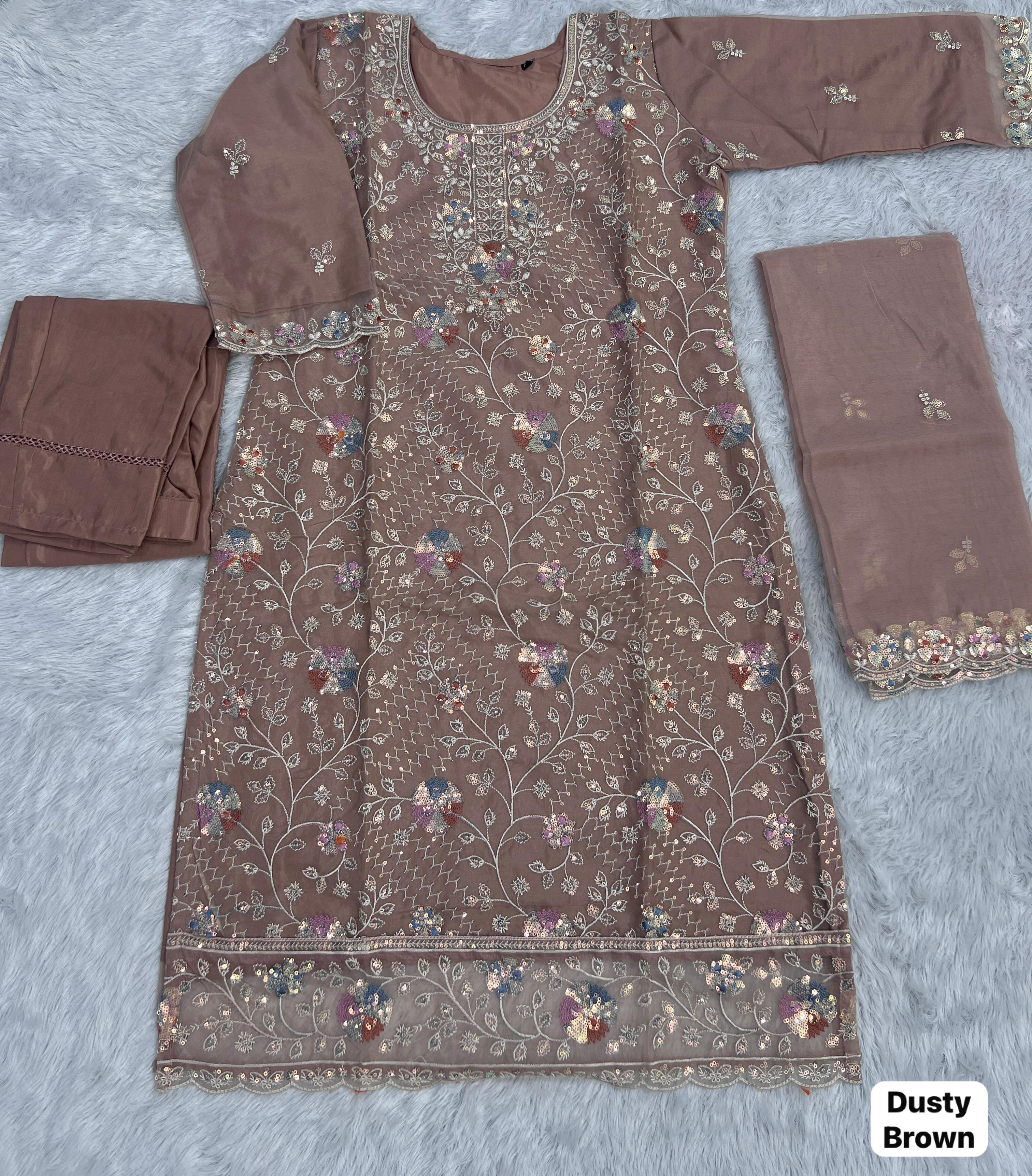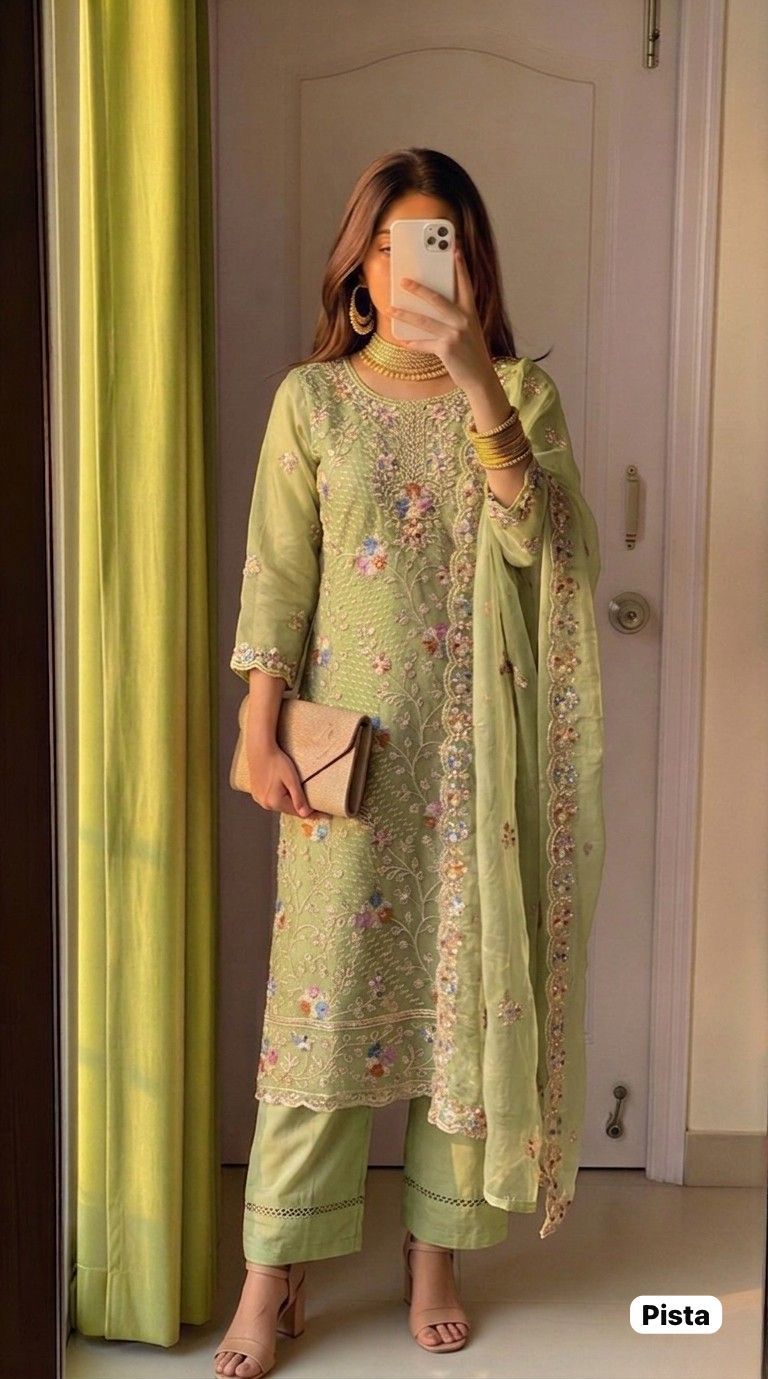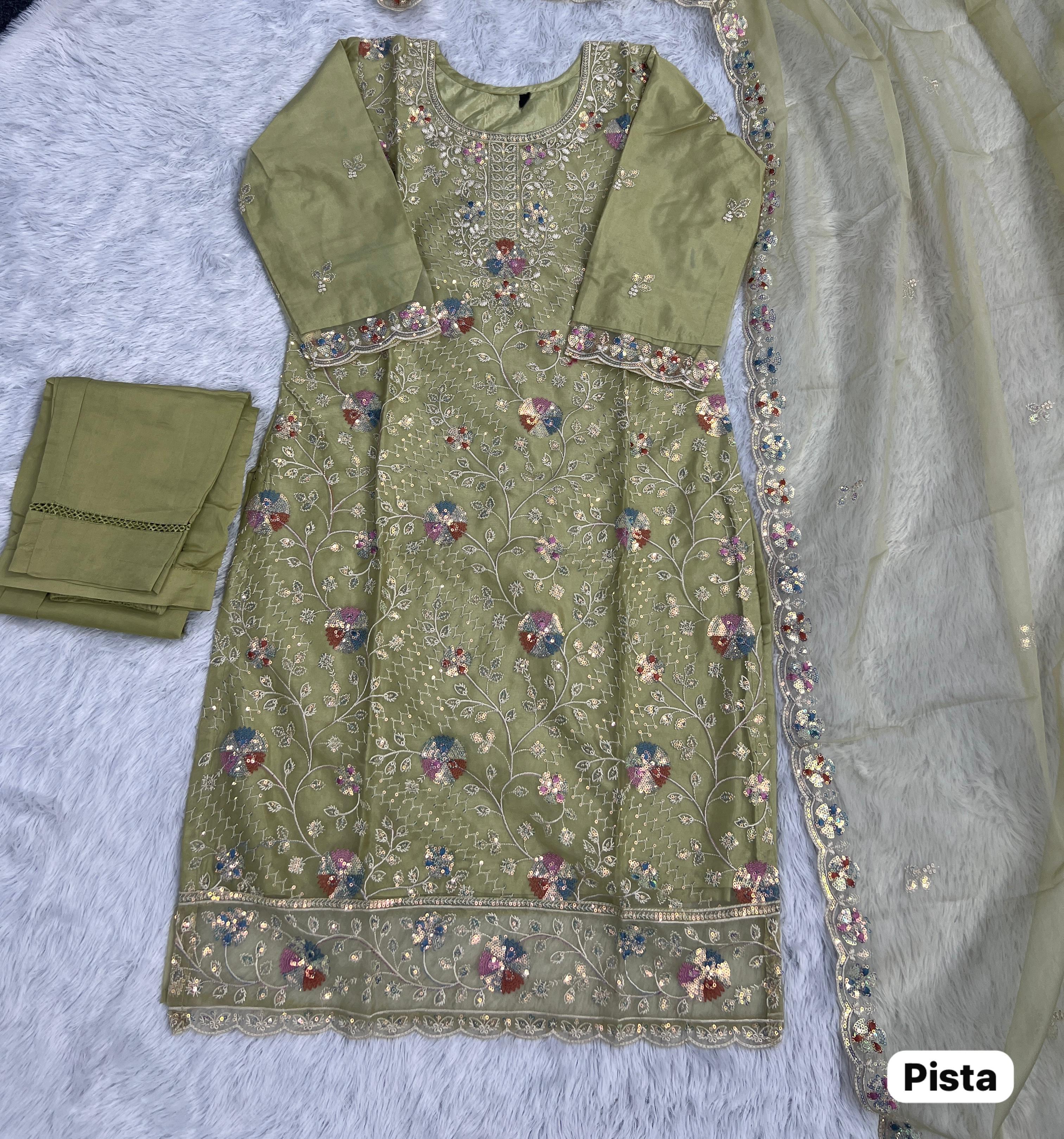 π *Top:* Organza silk with heavy Embroidery work + sequence work