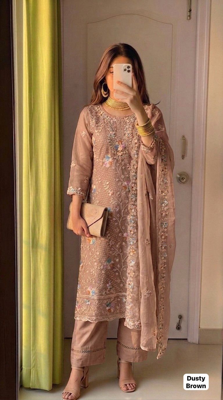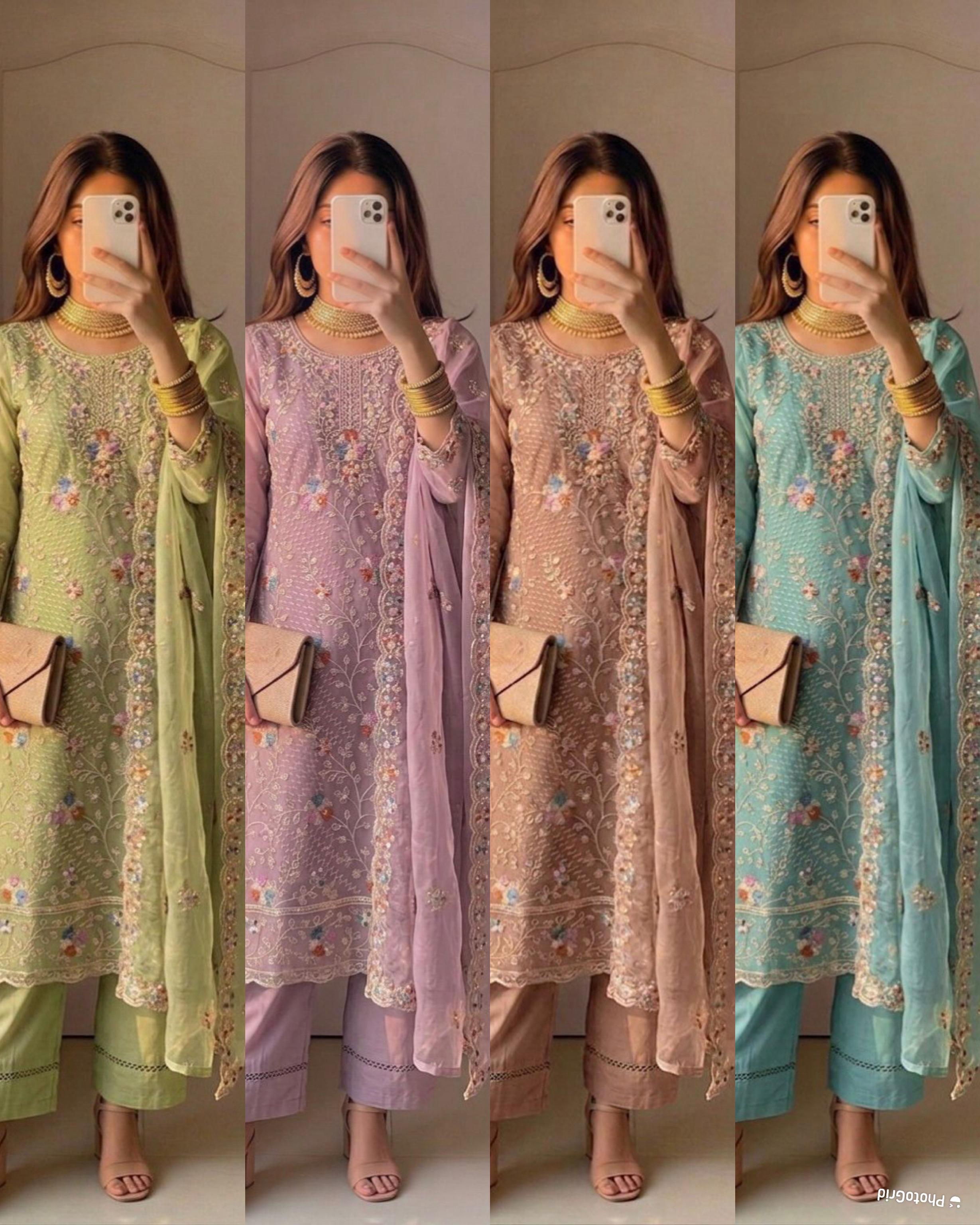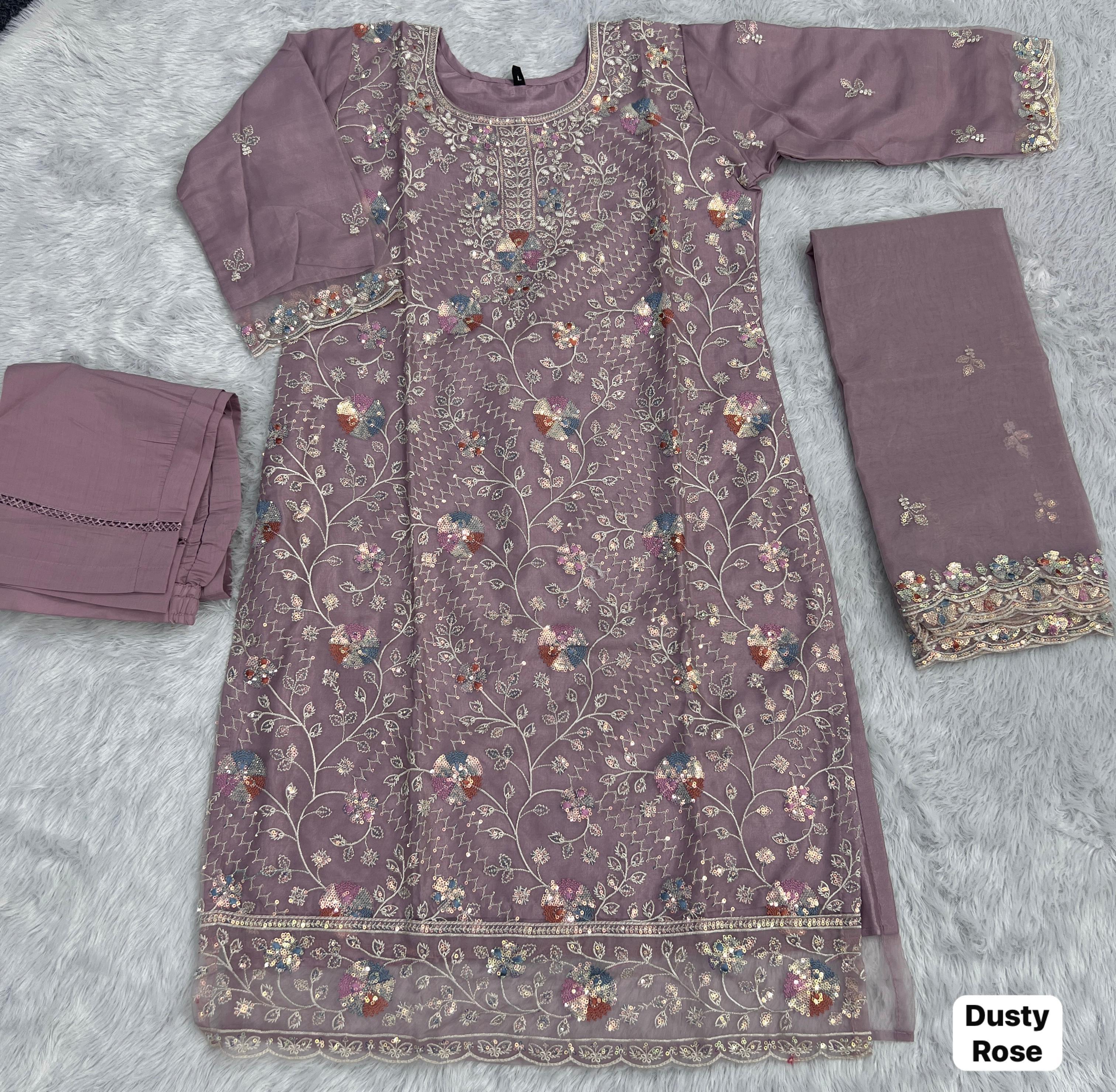 π *Top:* Organza silk with heavy Embroidery work + sequence work